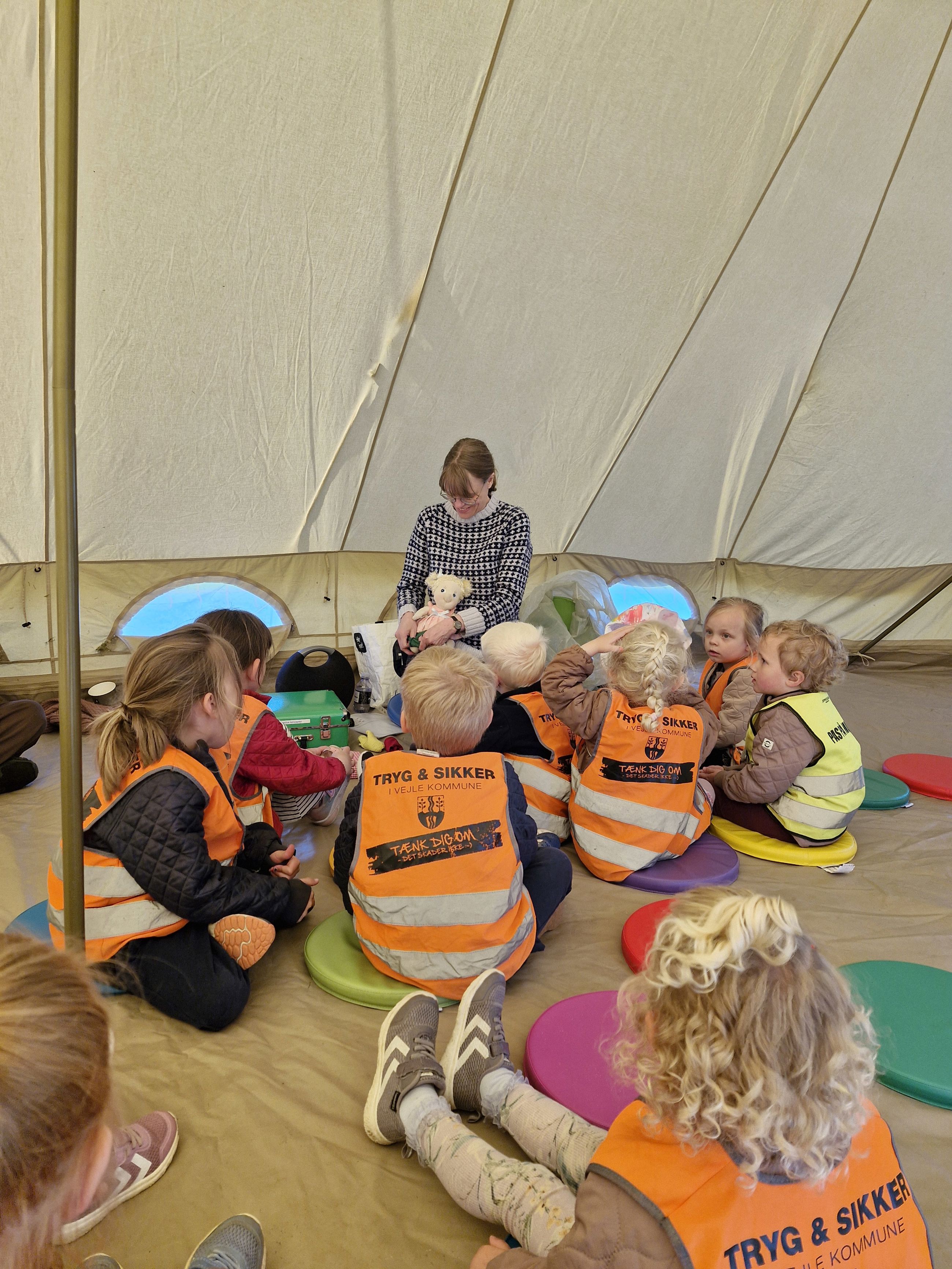 Der er plads til cirka 12 børn plus voksne pr. fortælling, og et skilt foran teltet vil vise, hvornår næste ”legende fortælling” begynder.